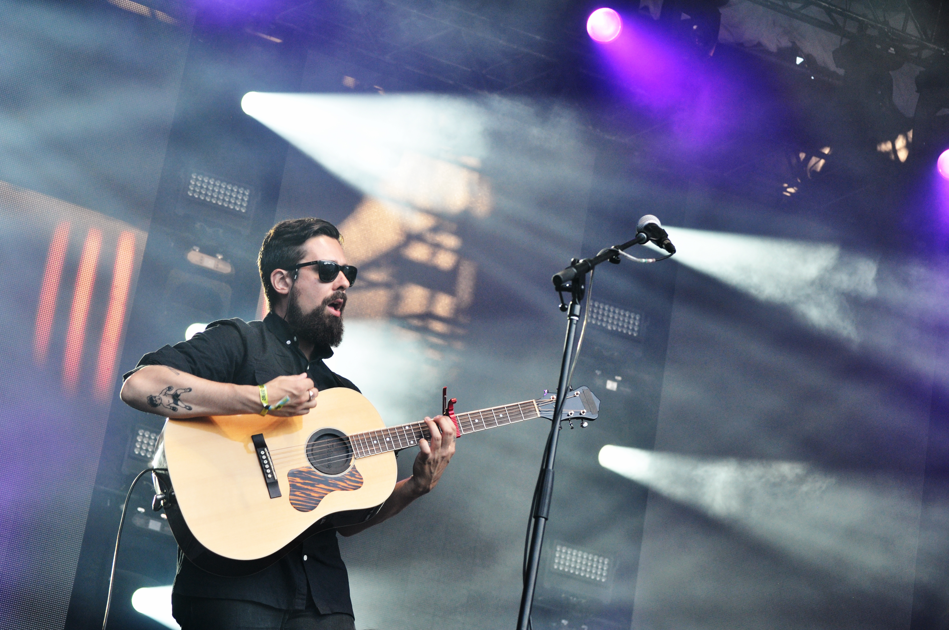 Depuis le temps qu’on ratait Elliot Maginot, on est bien content de le retrouver à Québec sur la nouvelle belle scène de la place George-V. Une fois n’est pas coutume, le Québécois ouvre la soirée pour Cœur de Pirate. Le parterre n’est pas bien rempli lorsque le jeune homme débarque au soleil couchant avec ses cinq musiciens du jour (saxophone en prime, par Félix Petit que l’on voit décidément partout !).