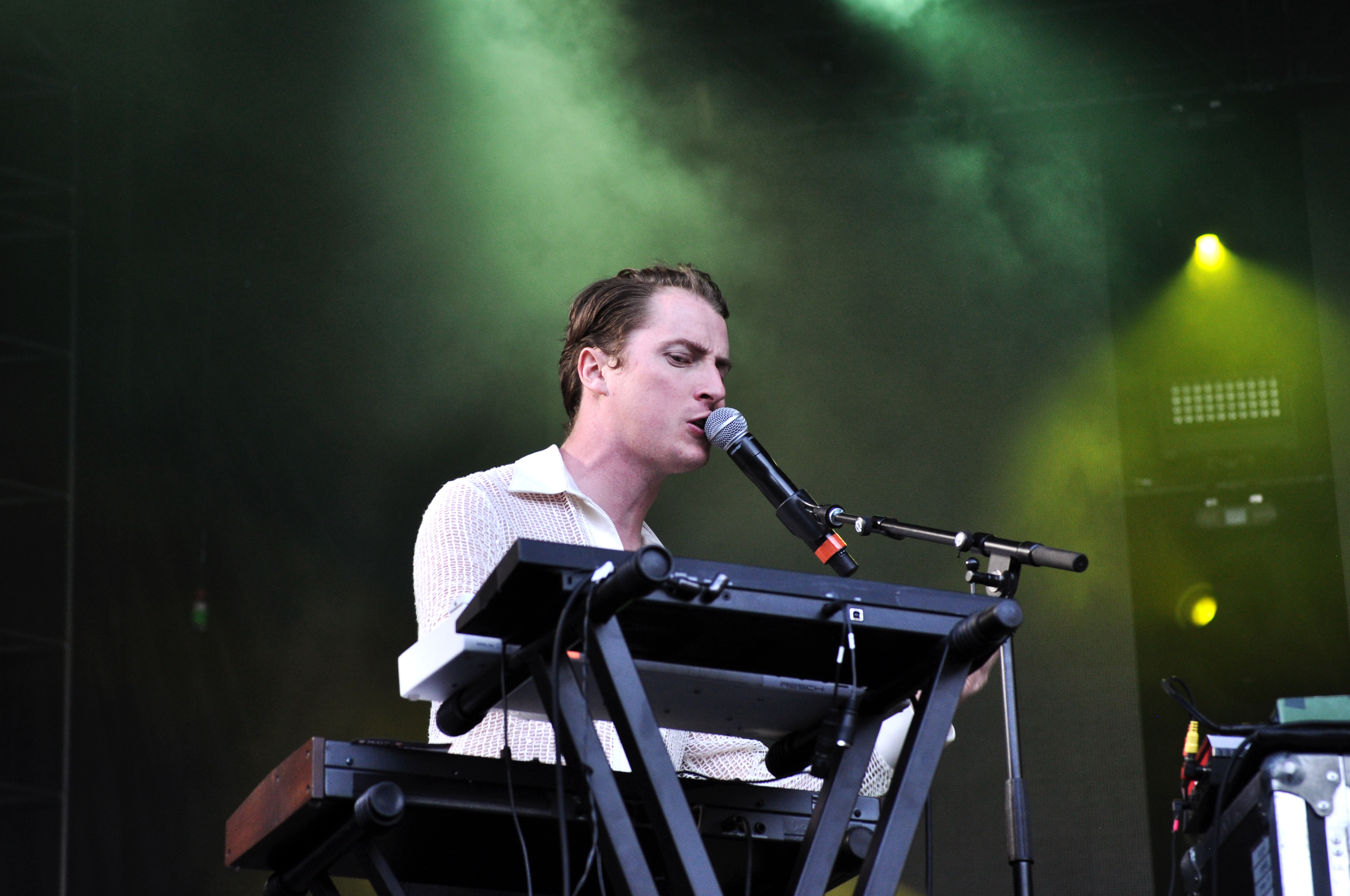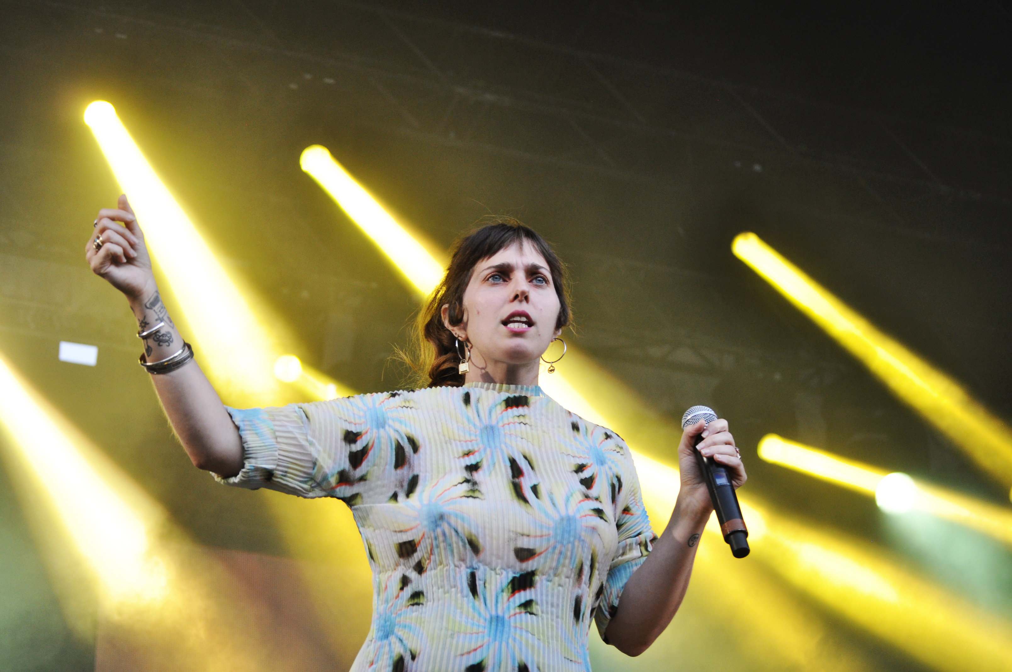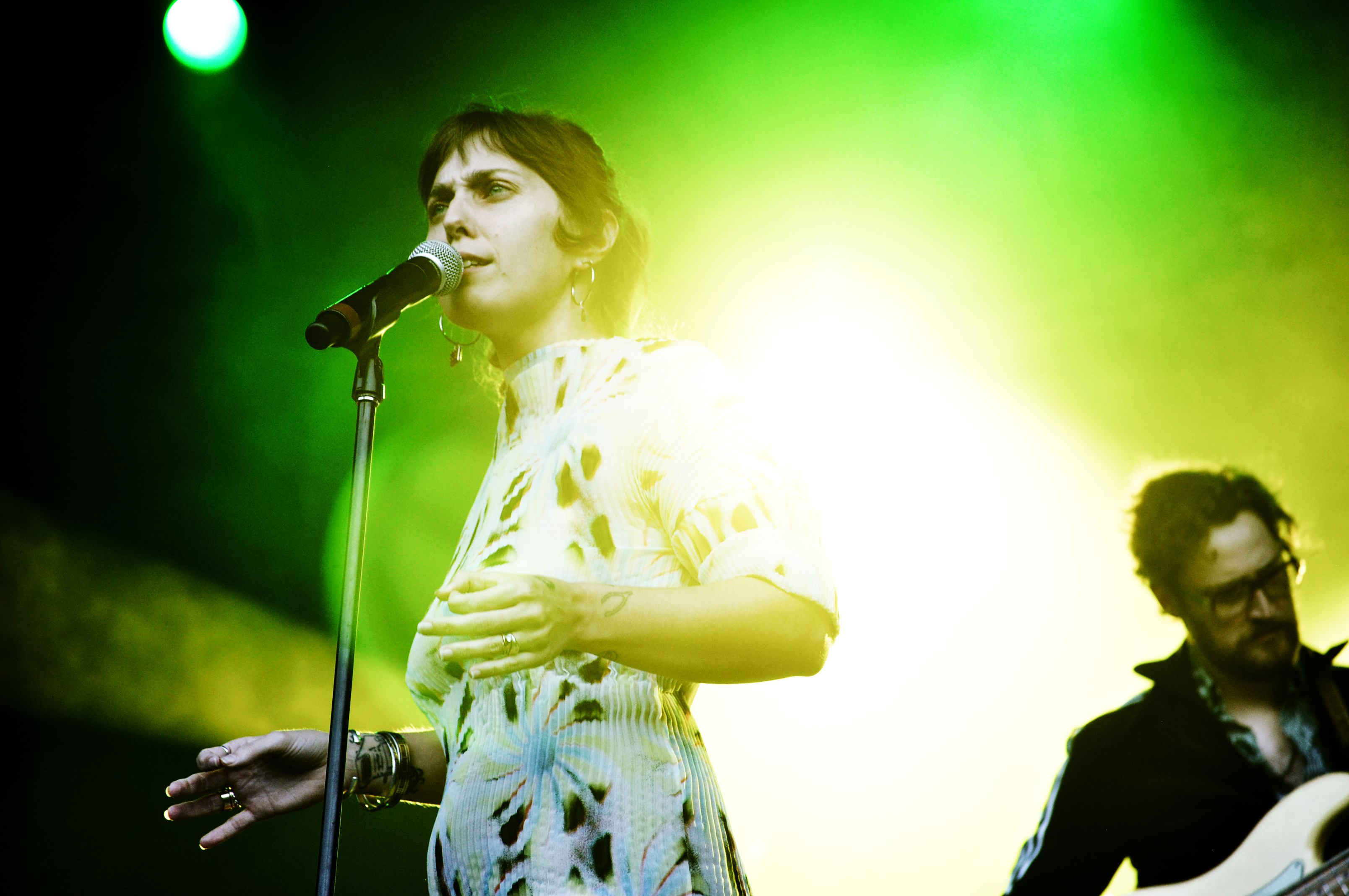 Comme on dit en bon québécois : le show de U.S. Girls était malaisant. Ce genre de moments où tu hésites à prendre tes affaires et partir avant la fin du spectacle, ou crier au génie. Dans le box des médias en tout cas, ça n’y allait pas de main morte alors que le groupe canadien était lancé dans une jam interminable sur les bases de “Pearly Gates”.