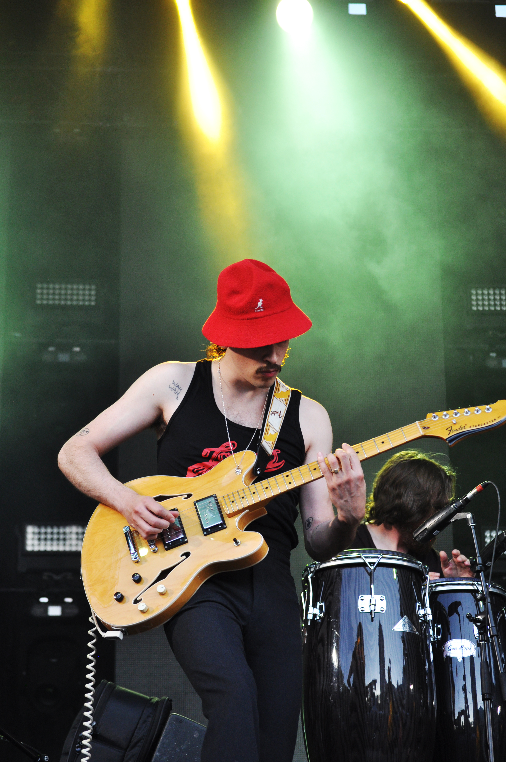 Tous les regards se portent sur le ces deux femmes fatales (surtout sur Meg Remy qui supplante son acolyte) au chant qui se tortillent et susurrent des textes dont on n’a que faire. Jeu de séduction avec les techniciens qui passent, caresses aux vigiles, danse lascive avec le claviériste et même grand tour du propriétaire jusqu’à la tente de la régie, pieds nus, alors que sur scène la musique se poursuit. Leur maniérisme intrigue et dérange. Dans le public les regards sont curieux mais souvent vite lassés. À vrai dire, on aimerait être élogieux mais quelques jours après leur performance, on ne sait toujours pas sur quel pied danser.
