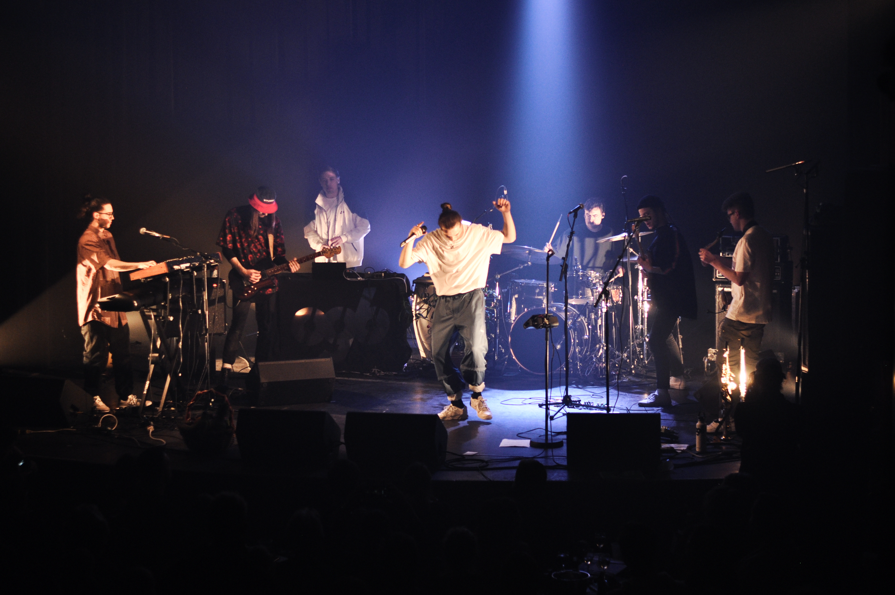 Malgré quelques soucis techniques qui les obligent à prendre quelques minutes de réajustement, Luis Clavis et la moitié des musiciens “de ses deux groupes préférés” (comprendre Valaire et Qualité Motel) ne se laissent pas décontenancer et réussissent témérairement à finir “Dix30”, en ouverture de show. Le Québécois ne manque pas d’énergie et de volonté pour venir chercher et réchauffer ce public Centre-Sud quelque peu frileux (dans les deux sens du terme) à s’avancer plus proche de la scène. Il présente les titres de son premier album Homme objet sorti fin février au carrefour du hip-hop, de la pop et de l’électro. Résultat, une performance blindée de bonnes vibes dont la basse funky et les lignes de clavier rétro as hell, nous réchauffe le cœur et l’esprit (à défaut du reste de nos corps un peu meurtris). Restons sur la phrase titre et totalement adéquate de La force des choses pour qualifier ce set : le bonheur a les pieds froids.