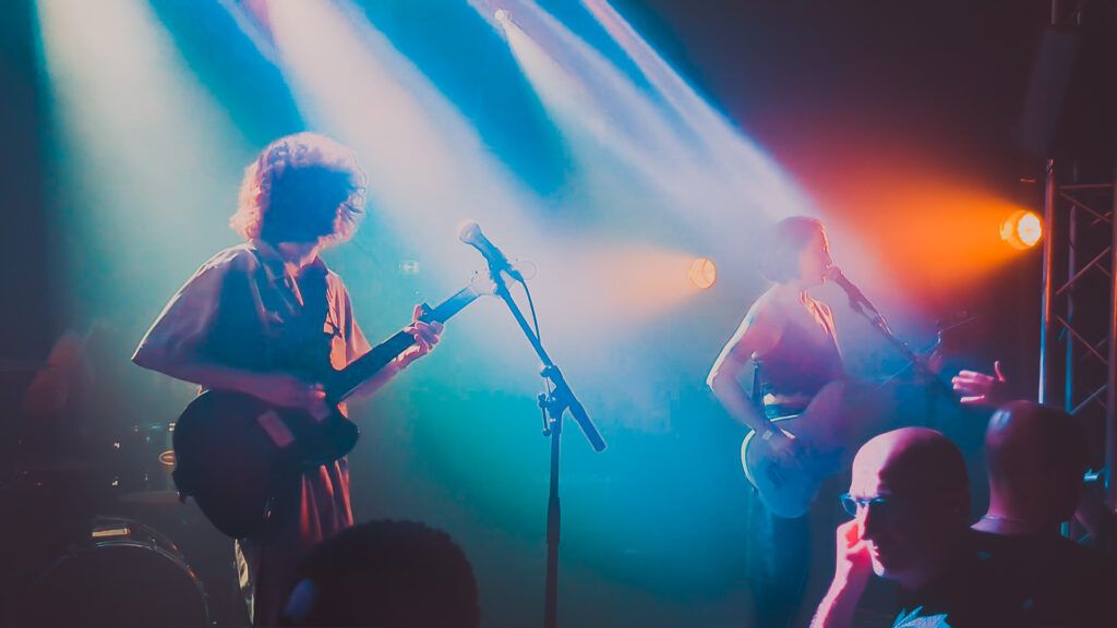 Mila, la chanteuse et bassiste du trio composant The Toksin, commence le show en nous expliquant qu’ils arrivent du Valais en Suisse et sont hyper heureux d’être là. Le public est à fond aussi et ça envoie dès le premier morceau. Sa voix à la Janis Joplin nous scotche, le son est puissant et tous les marqueurs visuels du groupe de rock sont présents : tatouages, cheveux longs et looks travaillés, notamment pour Loris le guitariste et sa combi grise. Les chansons s’enchaînent, à peine le temps de boire une gorgée d’eau pour tenter de se rafraîchir. Et il fait chaud sous les projecteurs ! Les trois membres du groupe se donnent à fond. Le public aussi : ça pogotte, ça slame, ça applaudit, ça en demande encore alors c’est reparti.