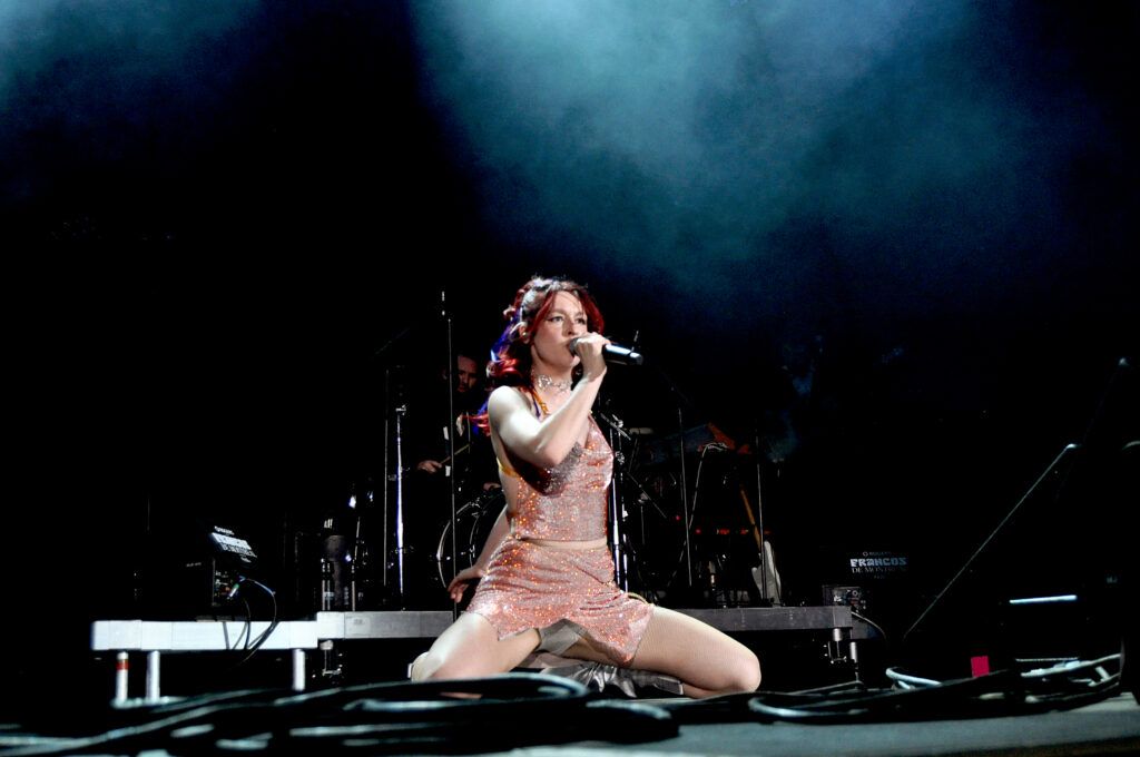 La Québécoise entame la partie par “Dis-moi dis-moi, dis-moi”. Premier extrait et aussi première chanson de son avant-dernier album, Journal d’un loup-garou. Une partie du public, les fidèles, ont répondu à l’appel de l’artiste et se sont parés de vêtements rouges ou d’éléments de style “princesse triste”. La place des festivals est bien remplie.