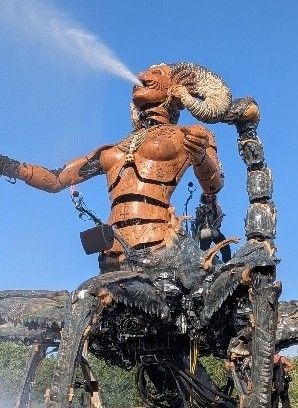 L’ambiance Hellfest est soutenue par de nombreuses structures, imposantes et vraiment léchées : on citera la Gardienne des ténèbres qui se met en mouvement régulièrement au niveau du Market pour 30 min de projection d’eau, chalumeaux et hochements de tête. Produite par la compagnie La Machine, c’est un symbole du festival et lorsqu’elle déambule, c’est très impressionnant. Par contre pour le choix musical qui l’accompagne – une petite musique type parade du cirque – on repassera.