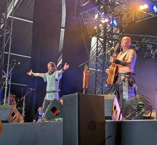 L’idée de convier Necurat pour trois morceaux était vraiment bien inspirée ! Le chanteur de Bliss Of Flesh a ainsi donné la touche “métal” qu’il manquait pour un concert au Hellfest. Et il n’en fallait pas moins pour convaincre les spectateurs de rester écouter la suite. Une petite reprise du main title de la série Game Of Thrones a ensuite embarqué tout le monde. Bon, il a aussi tenté de nous faire chanter mais en nous en demandant un peu trop ; les filles puis les garçons, une rythmique un peu trop complexe, bref : ça n’a pas été un succès ! Par contre, en mode danses bretonnes, le public a tout donné !