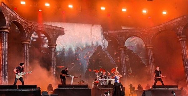 À peine le show de The Hu terminé, les fans de Muse commencent déjà à se masser devant la Mainstage 1. Je préfère aller profiter de Within Temptation sur la scène d’à-côté. Et je ne regrette pas ! C’est un vrai show pour les yeux et les oreilles ! La chanteuse Sharon den Adel arrive avec un corset aux couleurs de la France et un drapeau aux couleurs de l’Ukraine dessiné sur l’avant-bras (elle prendra la parole en dédiant une chanson à ce pays qui souffre tant). L’émotion est palpable et on sent bien qu’elle ne vient pas juste chanter mais réellement partager un message avec nous.