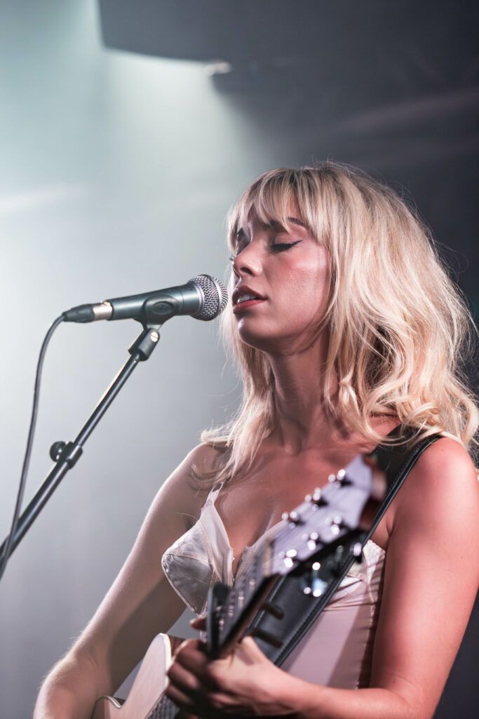 Grand bien nous fasse, parce qu’on s’était visiblement trompé d’insta ! Au bout d’à peine quelques secondes, on comprend que le registre de Roxane est plus soul que pop, et pas n’importe quelle soul. Celle d’Amy Winehouse. Celle des grandes chanteuses à voix qui en ont sous le coude. Du coffre, Roxane en a. Beaucoup. Et c’est assez impressionnant. Pas parce qu’elle se présente en pin-up blonde sur hauts talons, non. Mais parce que toute seule derrière sa guitare, droite comme un i derrière son micro, elle envoie sans pousser. Alors oui, sur la petite demi-heure de concert qu’on a entendu, on se dit qu’il faudrait une légère dose de nuances en plus dans la voix. Mais on se dit surtout qu’il y a beaucoup , beaucoup à explorer et qu’on va sûrement suivre Roxane d’un peu plus près. Victoire par K-O de la soul sombre sur la pop lumineuse. (MM)