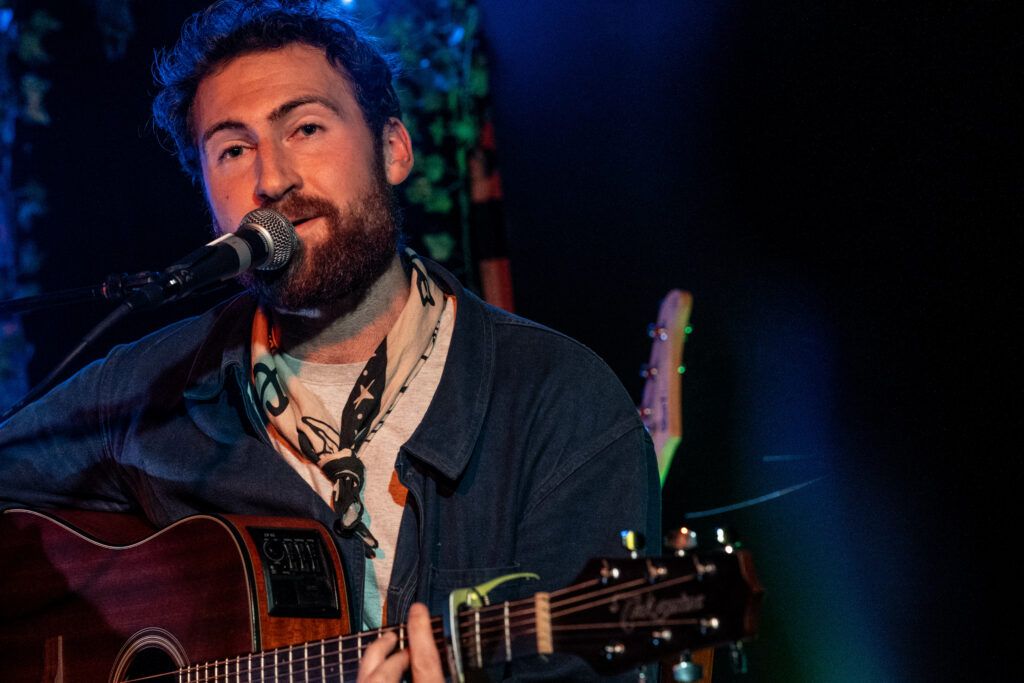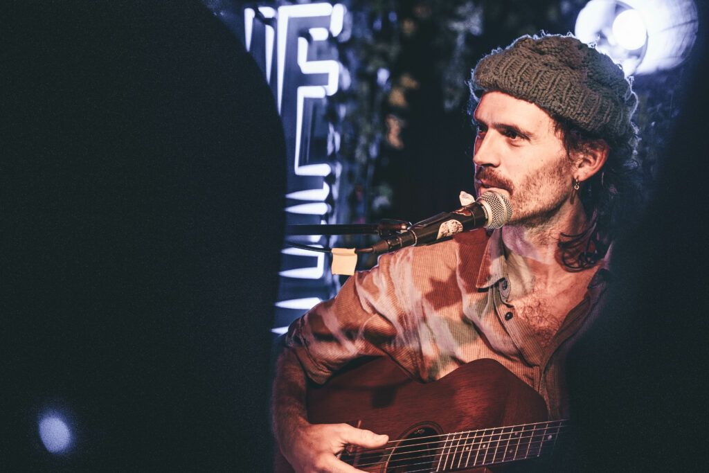 The Wooden Wolf ouvre et on le retrouve avec la même joie qu’on aurait à glisser un vieux vinyle qui craque sur la platine pendant qu’on s’enroule dans un plaid moelleux. La chaleur, la beauté, le confort ressentis lorsque sonnent les notes familières des titres qu’on connaît bien. Il convoque notre sainte trinité à nous. Bob Dylan, avec une reprise de protest song parce qu’inutile d’en faire de nouvelles quand d’autres ont déjà maîtrisé l’exercice (ça, ça se discute). Leonard Cohen, qu’on entendra d’ailleurs en fond sonore entre les concerts avec son Famous Blue Raincoat. Et Damien Rice. Lui, pas sûre que The Wooden Wolf l’invoque volontairement. Et pourtant, leurs sets sont habités par la même énergie, se réclament des mêmes références, et sont conduits avec la même farouche indépendance.