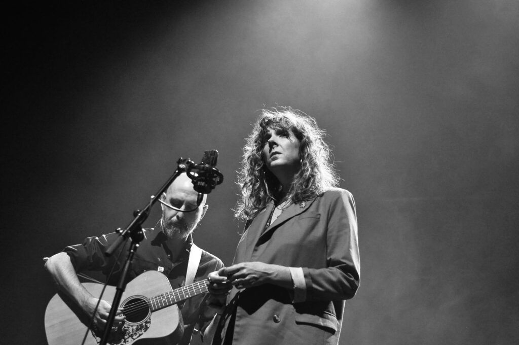Éloignée de son micro cardioïde, on sent les fréquences cardiaques du public ralentir doucement. On se fait envelopper par les mélodies mélancoliques de l’artiste. Elle mentionne Stéphane Lafleur, qui lui a écrit une chanson (“Les étoiles mortes”), puis deux, ému par l’histoire du décès de sa belle-mère. Et puis Gab Bouchard avec qui elle partage normalement sa chanson “Le loup” remplacé ce soir par Guillaume, son guitariste. Enfin, elle nous parle forcément de “l’ex”, celui dont parle cet album. Celui chez qui elle a enregistré des chants d’oiseaux qu’elle demande au public de reproduire, ayant oublié l’enregistrement cette fois-ci. Pas de geai bleu ni de corbeaux exige-t-elle, amusée.