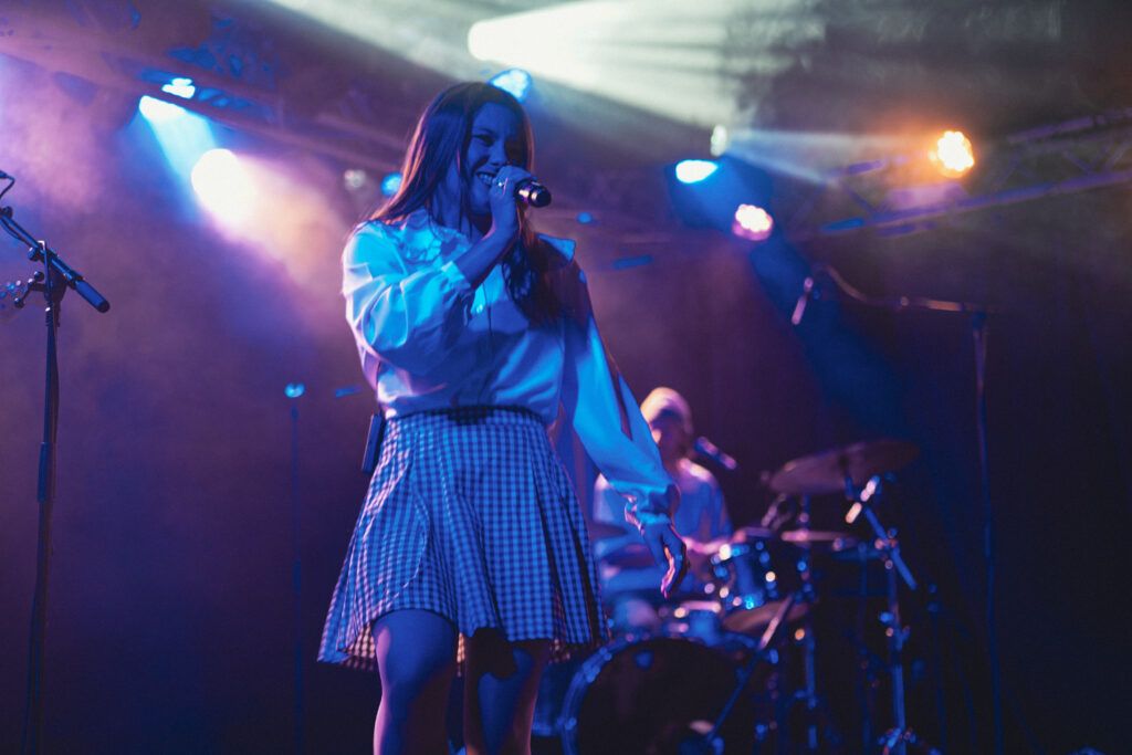 Amouë arrive sur scène avec une énergie à laquelle je ne m’attendais pas. Comme à mon habitude, je suis venue en mode totale découverte, sans rien écouter auparavant. Et clairement, je ne m’attendais pas à une telle présence scénique, malgré ce début de carrière. Côté scène, une décoration simple mais qui remplit parfaitement son rôle : petite table ronde habillée d’un napperon et coiffée de bougies de part et d’autre de la scène. Simple, discret, efficace. Amouë s’entoure d’un batteur et d’un guitariste, et ça joue très bien ! Tellement concentrée à régler mon appareil, j’en oublie presque d’écouter les paroles… que je redécouvre le soir en réécoutant certains titres ! Là aussi, un parfait mélange qui flirte entre douceur et interdit, des paroles qui parlent d’amour, de désir et aussi de ruptures très délicatement. Pensée toute particulière au titre “Rendez-vous”, dernier single en date, que j’ai particulièrement apprécié.