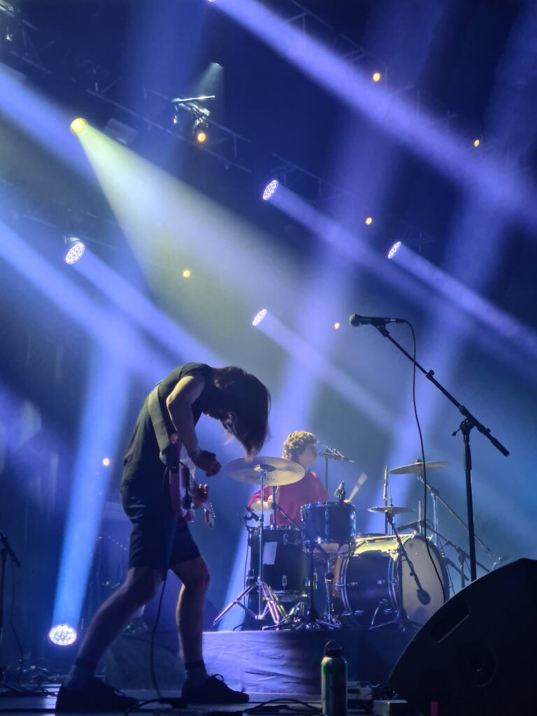 Direction ensuite le concert de Mind Enterprises ! On avait déjà dansé sur leur tube “Idol”, sorti en 2019. Ce groupe disco, formé par les deux italiens Roberto et Andrea, réchauffe très vite la salle ! La ribambelle de lumières rouges aux airs de boules disco s’actionnent, montent et descendent sur tous les festivaliers, en suivant le rythme cosmique du synthé. Et c’est vrai que dès les premières notes de chaque morceau, on a très envie de faire des pas de danse groovy !