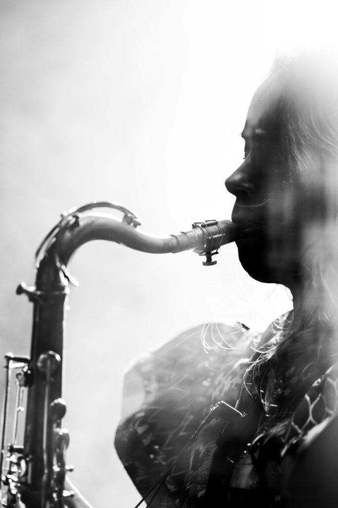 Après cette parfaite entrée en matière, le groupe dans son ensemble débarque, et c’est à nouveau le saxo de Lisen qu’on entend, accompagnée d’une basse caressée par l’archet sur “Rising Legends” . Et puis la voix d’Anna débarque et emporte tout. On pleure déjà tant on est pris par une force qui élève et écrase en même temps. Et c’est ce paradoxe qui fera du concert la claque énorme qu’il a été.