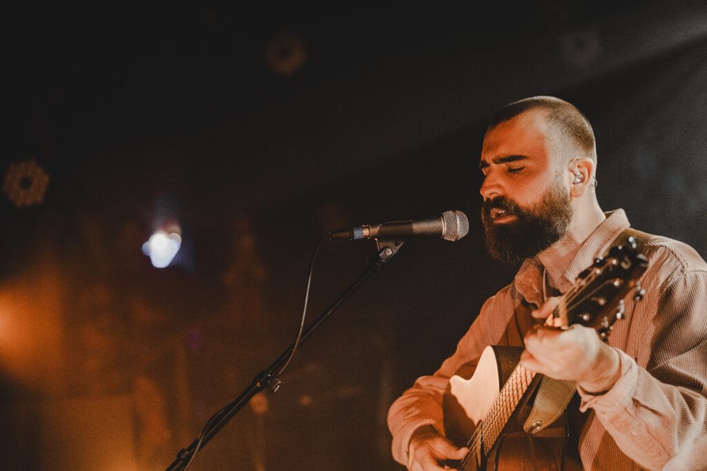 La première fois qu’on allait voir Hugo Barriol, c’était dans un appartement strasbourgeois, dans cette période étrange qu’était l’automne 2020. La musique live nous manquait, on grapillait ce qu’on pouvait, où on le pouvait. Même dans des appartements d’inconnus, donc. Cinq ans et demi plus tard, on peut certes revoir les folkeux dans des salles de concert, mais la période n’en est pas moins aussi étrange. Un autre genre d’étrange, de celui où on se dit que ces moments-là, il faut les chérir. Que c’est une joie de se retrouver avec des inconnus dans une salle, juste pour écouter et applaudir des artistes. En ces temps incertains pour la culture, quel bonheur de se dire que des artistes comme Hugo Barriol parviennent à faire leur chemin, et à jouer ici à La Maroquinerie, devant une foule de vrais fidèles, si on en croit les bribes de conversations glanées ici et là.