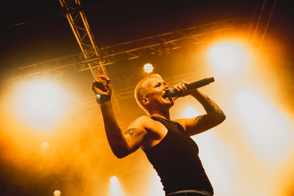 A ce stade de la soirée, soyons honnête, on ne comprend pas vraiment l’ordre des groupes. Parce qu’autant dééfait que shortstraw. auraient mérité de jouer en fin de soirée, ou du moins un peu plus tard. En revanche, on comprend bien pourquoi Jehnny Beth débarque ensuite. L’énergie est FOLLE. Des litres de sueur ont été perdus ce soir, sachez-le. Entre ses sauts incessants, les kilomètres parcourus sur scène, les passages dans le public, pour danser et pour slamer, Jehnny Beth ne s’est pas économisée. Et fait définitivement honneur à sa réputation de bête de scène.