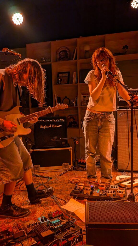 On change de lieu et d’ambiance avec Carnage Piknik au bar le Tumulte. C’est ce trio manceau qui prend la relève. Carnage Piknik c’est du post-punk expérimental porté par toute la fraîcheur et le chaos de leur jeunesse. Ils ont sorti deux EP Silence as a tone of noise en 2024 puis Love Loving l’an passé et sont venus faire entendre leurs voix ce soir. Le public était bien présent au Tumulte pour venir partager ce moment de douce rage. À la fin de leur concert, la grande salle se vide. Il est quasiment 23h quand La Société Déso du Nord prend la suite en proposant un DJ-set. De quoi fera danser les quelques couche-tard du jeudi soir !