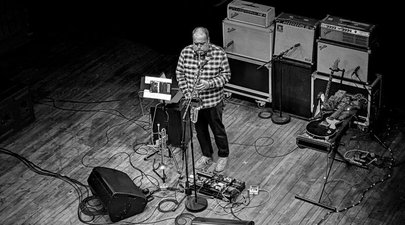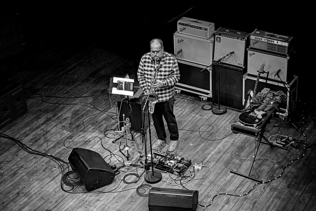 On va jeter une oreille et nos yeux et à peu près tous nos sens dans la salle Odéon du Théâtre d’Angoulême pour découvrir toute la créativité d’Arnaud Fournier. C’est très expérimental, déroutant mais captivant. Il mélange les instruments habituels tels que le saxophone, la trompette ou la guitare avec des sons venus tout droit de son imagination débordante. Bruits de rasoir électrique, coup de flûte sur des cordes de guitare… le tout en usant et abusant des effets électroniques et autres loops qui lui permettent de nous proposer une expérience totalement débridée et foisonnante alors qu’il est seul en scène.
