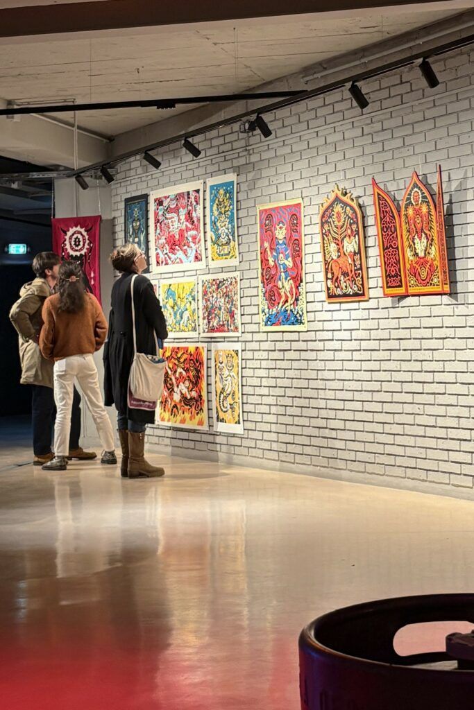 Puis c’est parti pour une grosse soirée à l’espace Franquin. Premier concert prévu à 21h30 ; c’est un peu tard ! Mais ça me permet de souligner la ponctualité parfaite tout le long du festival, bravo à l’orga ! On en profite donc pour faire un petit tour dans le sous-sol de ce centre culturel qui accueille les deux soirées payantes du Dust. La boutique Boum!, nous permet de découvrir un peu plus l’univers psychédélique et symbolique de Brulex à l’origine de l’affiche de l’édition 2026 de Dust Is Precious.